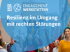 Wie können wir sicher und souverän bleiben, wenn wir mit rechten Störungen konfrontiert werden? Wie können wir auch in Konfliktsituationen bewusste Kommunikation entsprechend unserer Werte einsetzen? Neben Impulsen zum politischen Framing und der Regulation des Nervensystems werden in diesem Workshop gemeinsam Strategien trainiert, um Resilienz für die Praxis im Engagement aufzubauen.